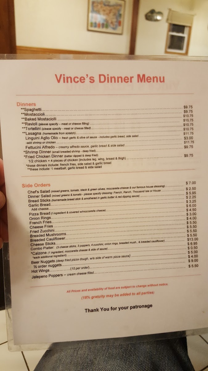 If you're in the mood for a cozy meal with a homey vibe, Vince's Pizza & Family Restaurant Menu offers something for everyone. Nestled at 1071 N 7th St, Rochelle, IL, this local favorite is the perfect spot for hearty, flavorful dishes. Whether you're craving a classic pizza topped with all your favorites or a satisfying pasta dish, their menu never disappoints. Vince’s is known for its freshly made pizza, with a wide variety of toppings and crust options that cater to every taste. For those looking for something a bit more filling, the selection of pasta, salads, and sandwiches will have you coming back for more. With a welcoming atmosphere, it’s the ideal place for a casual meal with family or friends. The friendly service ensures your visit is always a pleasure, making every bite even more enjoyable.